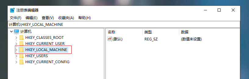 2.進(jìn)入注冊表編輯器,選擇【HKEY_LOCAL_MACHINE】。