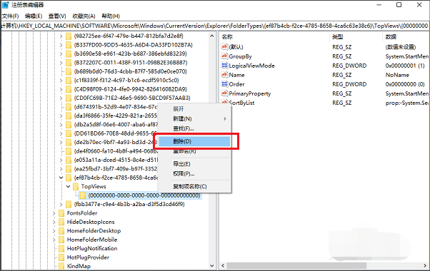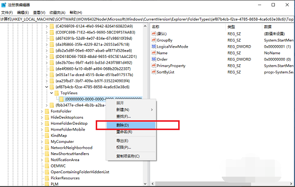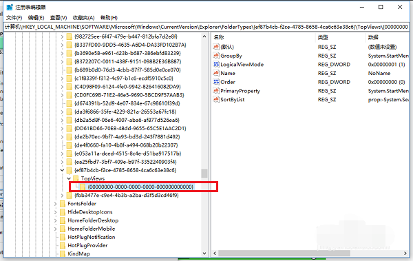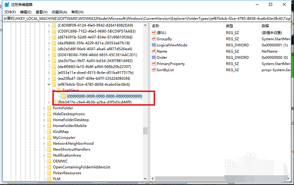 【HKEY_LOCAL_MACHINE->SOFTWARE->Wow6432Node->Microsoft->Windows->CurrentVersion->Explorer->FolderTypes->{ef87b4cb-f2ce-4785-8658-4ca6c63e38c6}->TopViews->{00000000-0000-0000-0000-000000000000}】