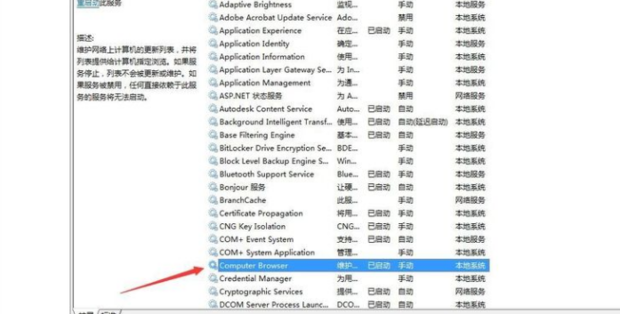 2.進入后點擊【Computer Browser】服務(wù)查看是否正常啟動,否則修改為【啟動】