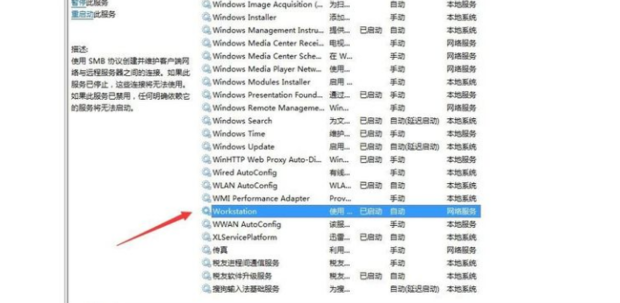 3.接著找到【workstation】服務(wù),查看是否正常運行,否則修改為【啟動】