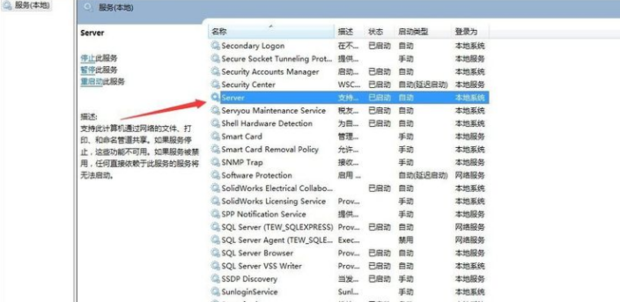 4.最后找到【Server】服務(wù),看是否也正常運行,否則也修改為【啟動】