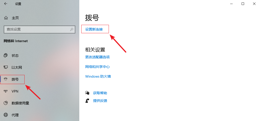 2.進(jìn)入設(shè)置界面,在左側(cè)選擇【撥號(hào)】,在右側(cè)點(diǎn)擊【設(shè)置新連接】。