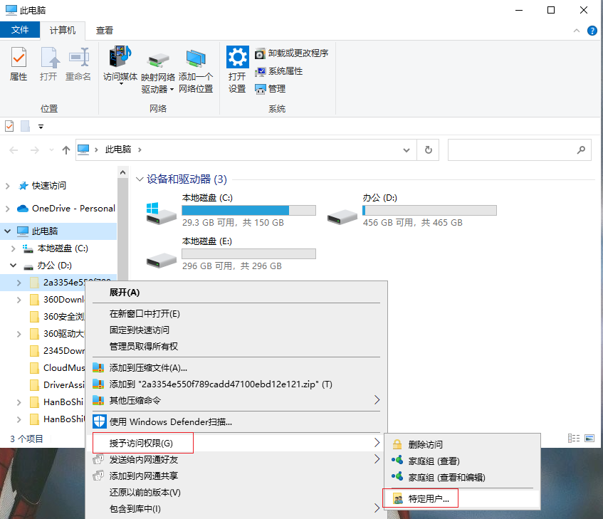2.進(jìn)入后選擇要共享的文件夾,然后右鍵打開下拉菜單欄,依次選擇【授權(quán)訪問權(quán)限】-【特定用戶】。