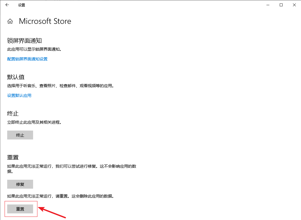 方法一:重置應(yīng)用商店應(yīng)用程序