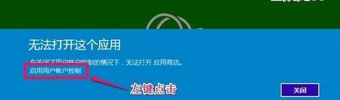 1.在彈出無(wú)法打開(kāi)的界面中點(diǎn)擊【啟用用戶(hù)帳戶(hù)控制】。
