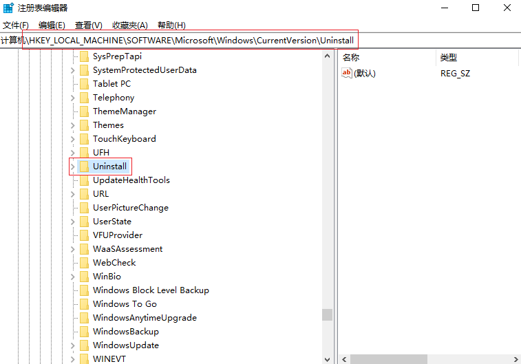 2.進入注冊表后,依次點擊【HKEY_LOCAL_MACHINE】-【SOFTWARE】-【Microsoft】-【Windows】-【CurrentVersion】-【Uninstall】。