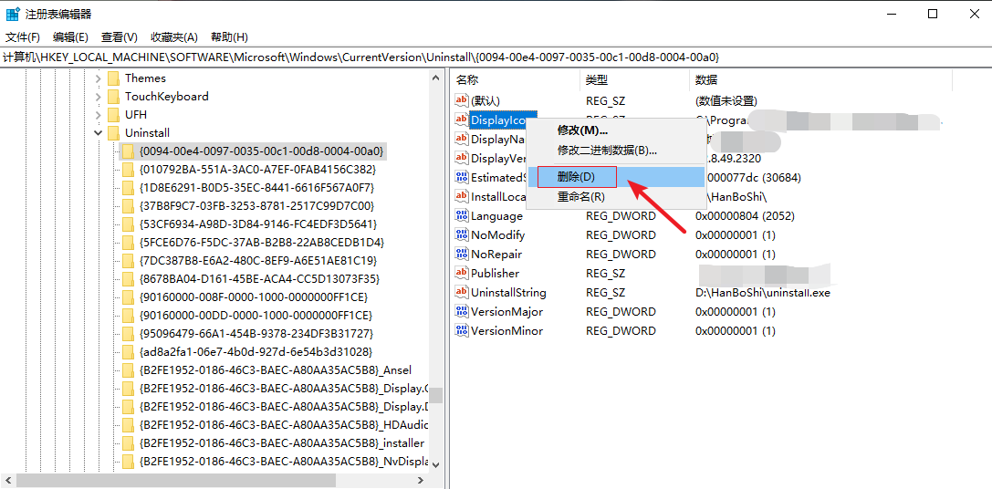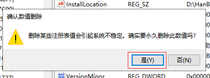 3.打擊打開【Uninstall】里的文件夾,然后在右側找到需要刪除的注冊信息,右鍵選擇【刪除】,點擊【是】即可刪除。