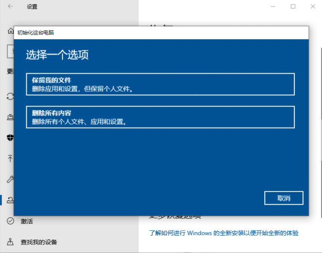 3.接著在彈出的窗口選擇一個選項就可以進(jìn)行恢復(fù)出廠設(shè)置了。