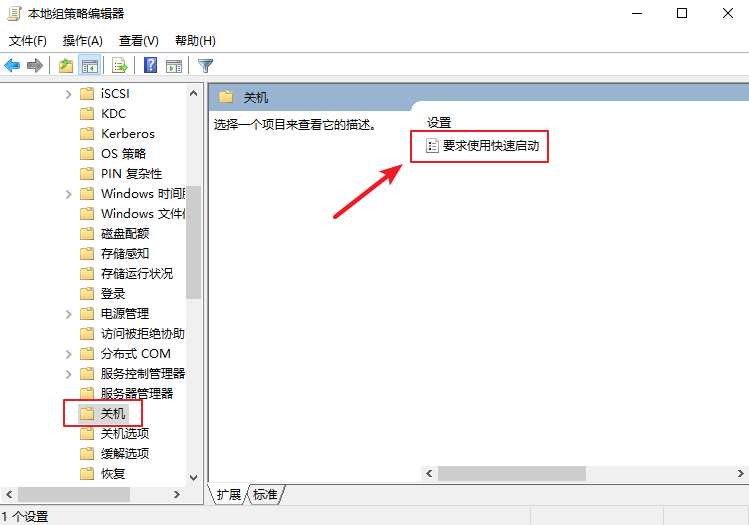 2.進入后,在左側(cè)依次點開【管理模板】-【系統(tǒng)】-【關(guān)機】,然后在右側(cè)雙擊點開【要求使用快速啟動】。