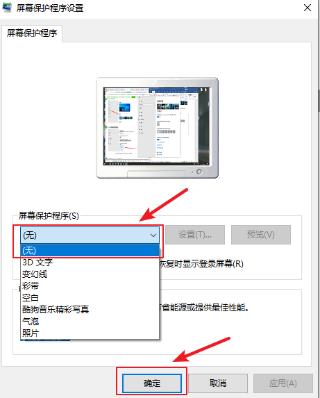 3.在屏幕保護(hù)程序的下拉框選擇【無】,然后點(diǎn)擊【確定】按鈕即可。
