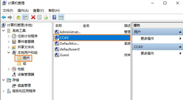 2.進(jìn)入計(jì)算機(jī)管理界面,在左側(cè)選擇點(diǎn)開(kāi)【本地用戶和組】-【用戶】,然后在右側(cè)找到當(dāng)前用的賬號(hào)。