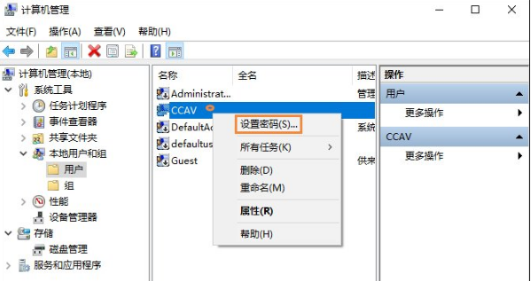 3.然后右鍵打開(kāi)賬號(hào)名稱,選擇【設(shè)置密碼】。