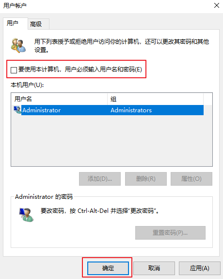 2.取消勾選【要使用計(jì)算機(jī),用戶必須輸入用戶名和密碼】,然后點(diǎn)擊【確定】。