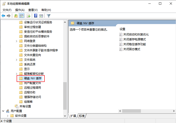 2.進(jìn)入本地組策略編輯器,依次點(diǎn)開【管理模板】-【系統(tǒng)】-【硬盤NV緩存】。