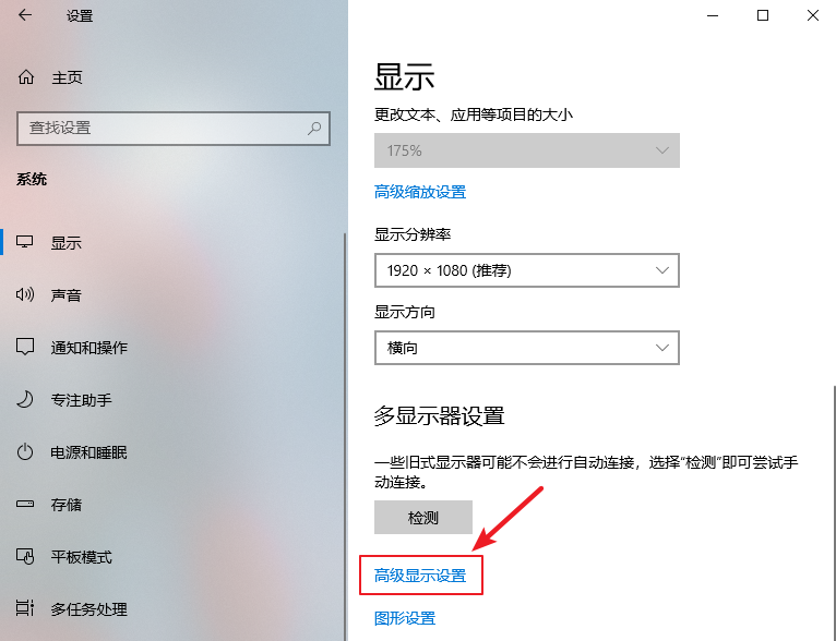2.進(jìn)入后,在右側(cè)下拉找到并點(diǎn)擊【高級(jí)顯示設(shè)置】。