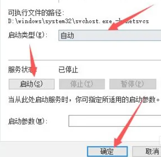 5、點(diǎn)擊【啟動(dòng)】,并將“啟動(dòng)類型”設(shè)置為【自動(dòng)】,點(diǎn)擊【確定】即可。