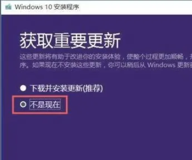 6.最后在升級(jí)開啟后,選擇【不是現(xiàn)在】,不要選擇【下載并安裝更新】,避免任何自動(dòng)安裝驅(qū)動(dòng)可能導(dǎo)致的兼容性問題。