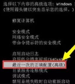 1.重啟電腦,按F8,選擇【最近一次的正確配置】。
