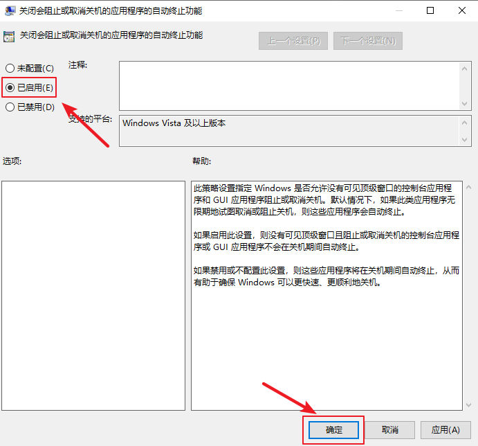 3.在彈出的界面中,選擇【已啟用】,然后點擊【確定】即可。