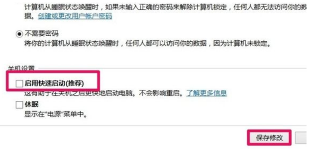 6.把【啟用快速啟動】前面的勾取消掉,然后點擊【保存修改】即可。