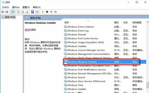 2.進入后找到【W(wǎng)indows Modules Installer】,查看是否被禁用。