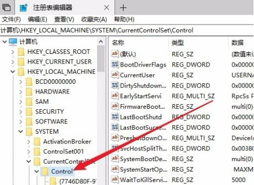 \HKEY_LOCAL_MACHINE\SYSTEM\CurrentControlSet\Control。