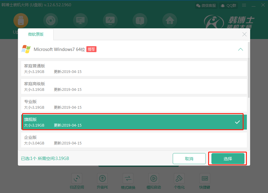 2.在彈出的選擇系統(tǒng)界面,勾選所需系統(tǒng),然后點(diǎn)擊選擇,進(jìn)入下一步;