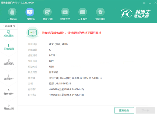 3.U盤啟動盤也無法進(jìn)行制作,則更換其他網(wǎng)絡(luò),再嘗試一鍵裝機(jī)或者制作U盤啟動盤。