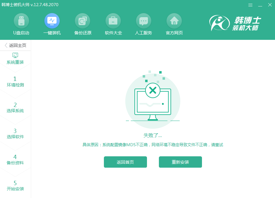 2.下載其他系統(tǒng)也MD5不正確,則嘗試制作U盤啟動盤,試試能否正常制作。制作成功后,使用U盤啟動盤進(jìn)行重裝。
