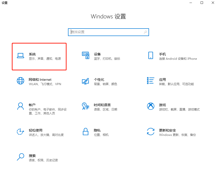 1.點(diǎn)擊win10桌面左下角開始菜單圖標(biāo),隨后選擇“設(shè)置”進(jìn)入。在打開的windows設(shè)置界面中選擇“系統(tǒng)”進(jìn)入。