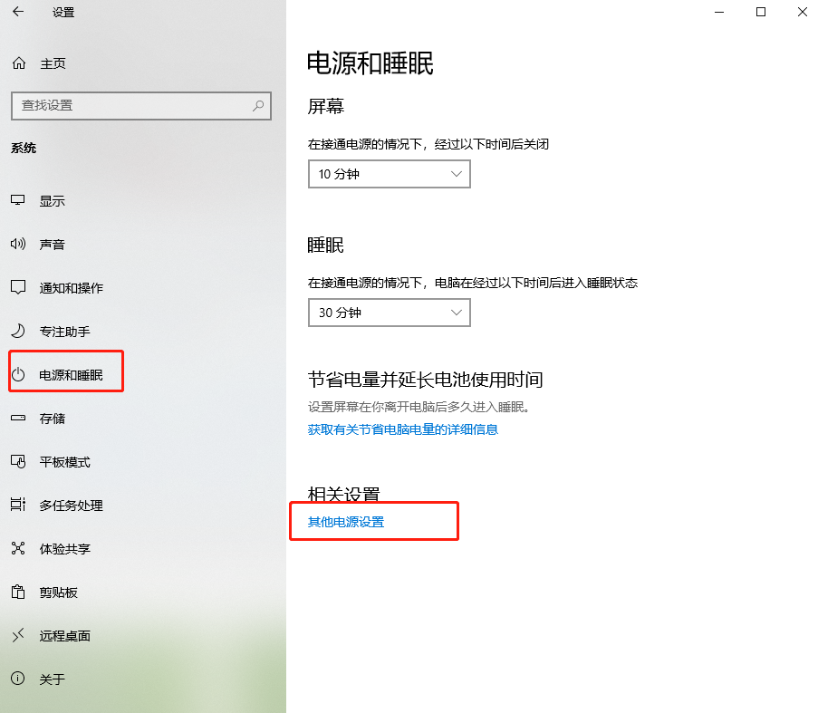 2.選擇“電源和睡眠”選項(xiàng),最后點(diǎn)擊“其他電源設(shè)置”即可。