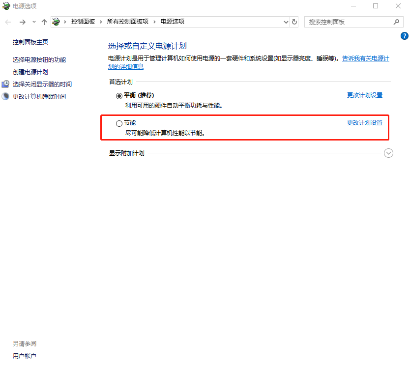 3.此時(shí)在以下界面中將電腦設(shè)置為“節(jié)能”模式。