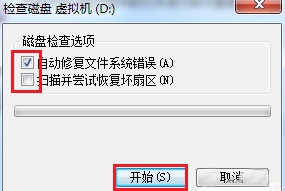 2.此時在彈出的窗口中勾選如下的兩個復(fù)選框,最后點擊“開始”按鍵。