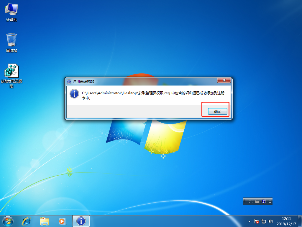 3.最后電腦會提示我們此項已成功添加到注冊表,最后點擊“確定”即可。