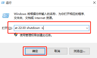 在鍵盤上按下“win”+“R”按鍵調(diào)出運行窗口,隨后輸入命令“at 22:30 shutdown -s”回車或者點擊“確定”即可。其中的22:30為關(guān)機(jī)時間,大家可以根據(jù)自身需要進(jìn)行修改。