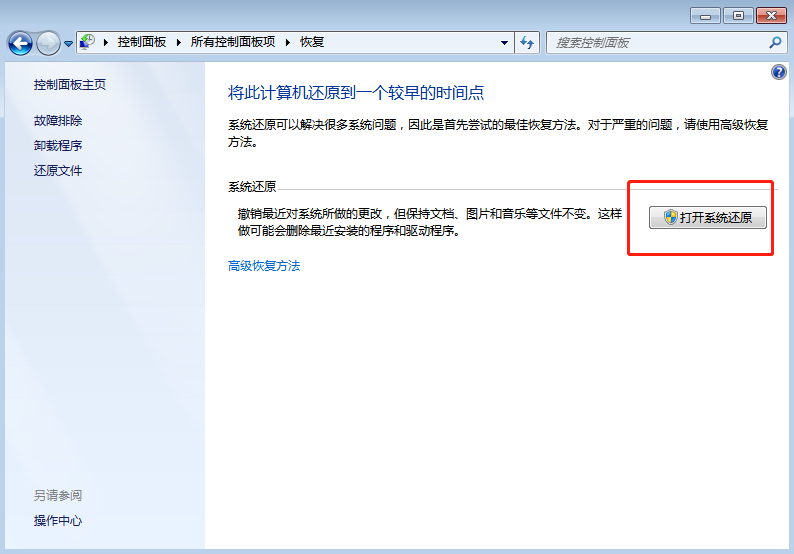 5.選擇“打開(kāi)系統(tǒng)還原”,如下圖所示: