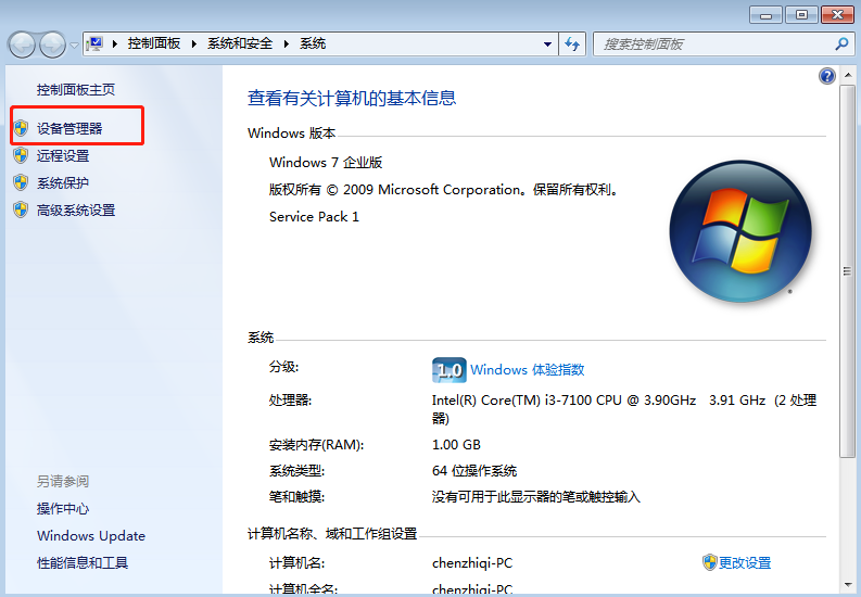 1.右鍵點(diǎn)擊win7桌面“計(jì)算機(jī)”圖標(biāo),選擇“屬性”進(jìn)入。在打開的屬性窗口中找到“設(shè)備管理器”進(jìn)入。