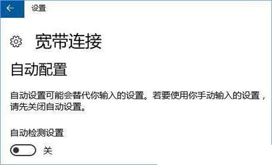 3.開始打開“寬帶連接高級設(shè)置界面”,打開“自動檢測設(shè)置”開關(guān)。隨后重啟電腦完成設(shè)置即可。