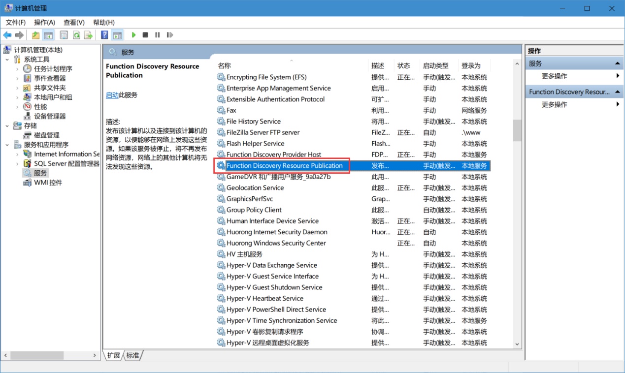 2.此時在服務(wù)中找到“Function Discovery Resource Publication”服務(wù)并雙擊打開。