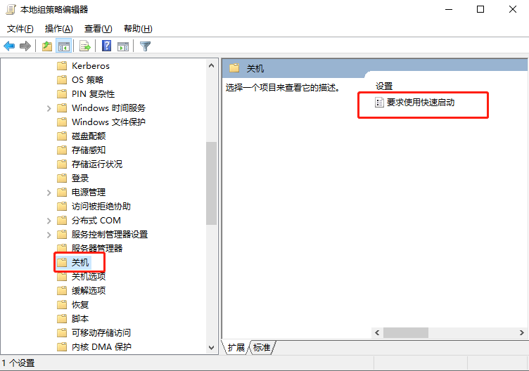 2.此時在打開的窗口中依次展開以下選項:計算機(jī)配置/管理模板/系統(tǒng)/關(guān)機(jī),隨后雙擊打開“要求使用快速啟動”。