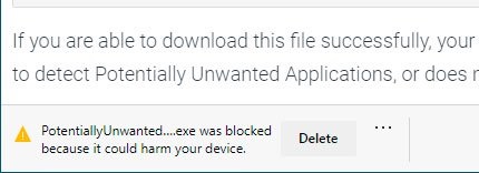 微軟正在測試一項(xiàng)新功能,允許你使用SmartScreen阻止可能不需要的應(yīng)用程序,也稱為PUA或PUP。當(dāng)啟用此功能并嘗試下載被歸類為PUA的程序時,SmartScreen將阻止下載文件,如下所示。