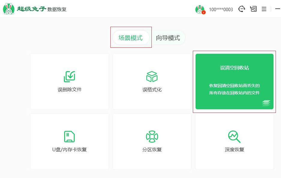 1.在百度搜索超級兔子,找到數(shù)據(jù)恢復軟件下載并安裝到電腦。打開超級兔子數(shù)據(jù)恢復,在場景模式下選擇誤清空回收站。