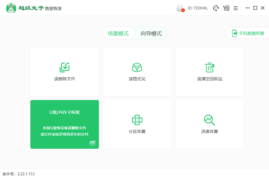 1.打開(kāi)超級(jí)兔子,在場(chǎng)景模式下選擇U盤(pán)/內(nèi)存卡恢復(fù)。
