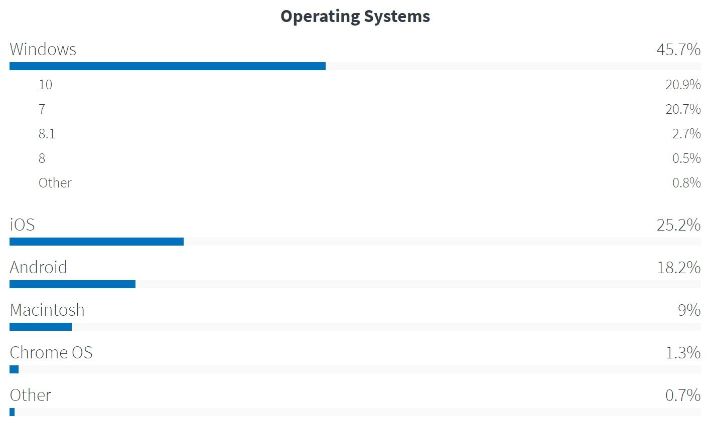 在2017年中,有機構(gòu)預(yù)測按照趨勢,在2017年底,Windows 10的全球市場份額將超過Windows 7系統(tǒng),不過根據(jù)Netmarketshare最新統(tǒng)計數(shù)據(jù),情況并沒有出現(xiàn)太大變化。在2017