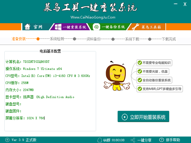 菜鳥一鍵重裝系統(tǒng)圖文教程菜鳥工具是一款可以一鍵重裝系統(tǒng)的裝機軟件,適合大部分電腦小白使用。不過第一次使用菜鳥工具可能會不太清楚操作方法。那么下面就讓小編給大家?guī)聿锁B工具如何一鍵重裝系統(tǒng)。
