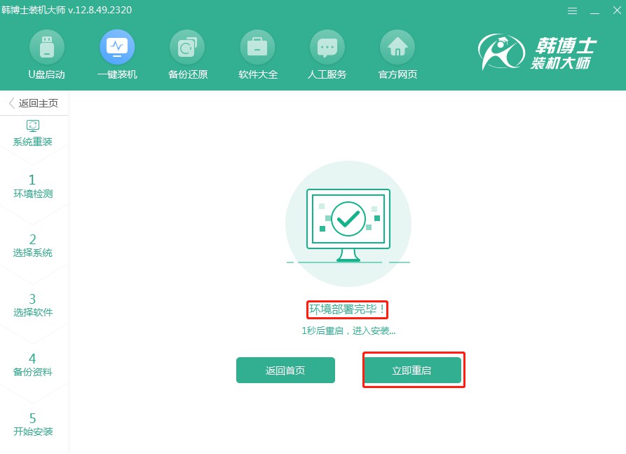 5.系統(tǒng)部署安裝環(huán)境正在進(jìn)行,請您暫時(shí)不要進(jìn)行任何操作,保持耐心,等待它自行完成,完成后請點(diǎn)擊“立即重啟”。