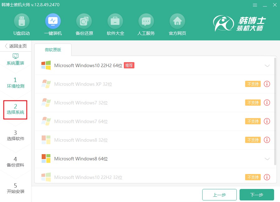 3.進入“選擇系統(tǒng)”步驟,您將看到一系列可用的win7系統(tǒng)版本。請選擇最適合您的版本,然后點擊“下一步”繼續(xù)安裝。
