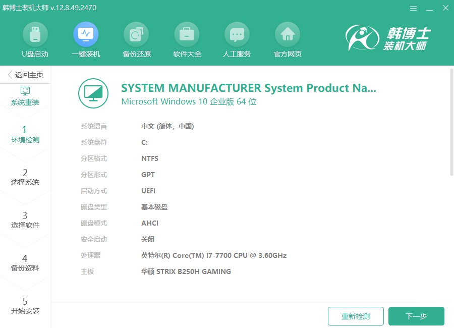2.韓博士會首先進(jìn)行環(huán)境檢查,待檢查結(jié)束后,點(diǎn)擊“下一步”按鈕,開始后續(xù)操作。