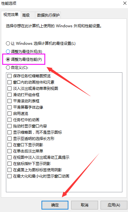 3.開始將電腦調(diào)整為最佳性能,最后點擊確定保存設(shè)置。