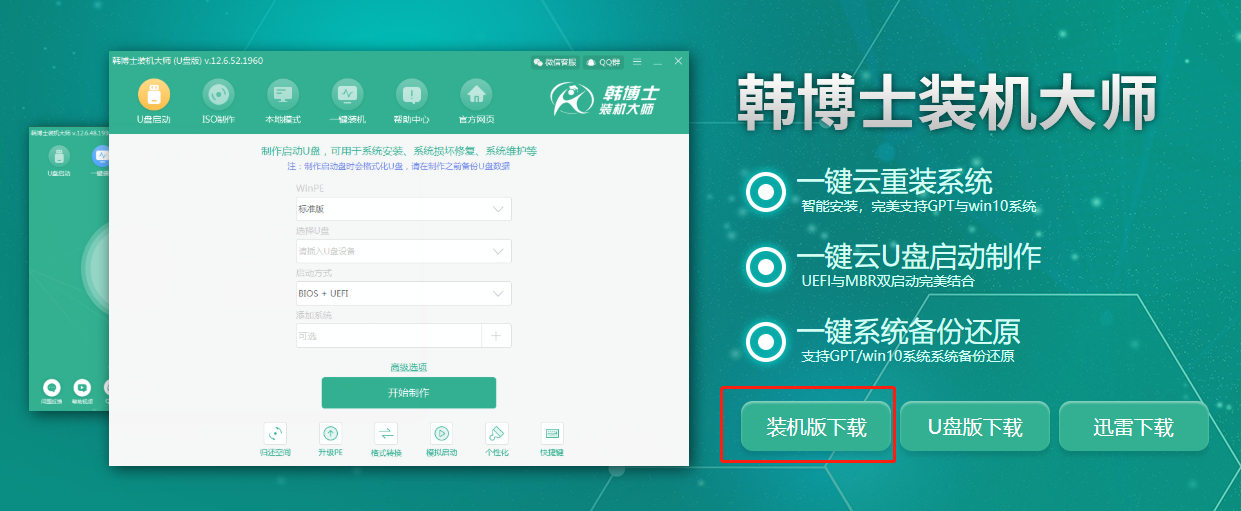 1.提前在官網(wǎng)下載韓博士裝機大師軟件,下載后退出殺毒應(yīng)用雙擊打開韓博士。